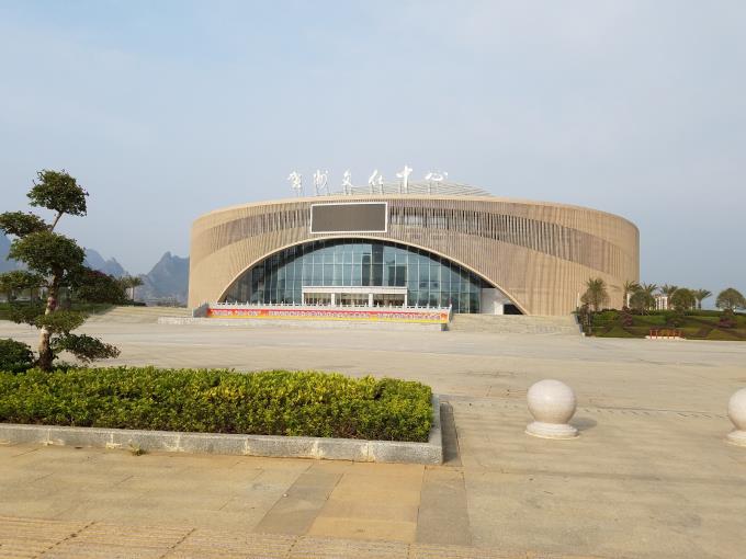 賀州市文化中心建設項目位于城東新區(qū)太白東路旁,整個建筑形體呈正圓形。項目開工時間為2012年2月3日,項目計劃總投資31300萬元,設計高度23.8m,總建筑面積33621㎡,占地117.7畝。建設內(nèi)容為局部地下二層及地上五層建筑,內(nèi)含1355個座位大劇院,影院、音樂廳、學術報告廳、會議室等8個功能廳,以及公共服務、車庫用房,室外臺座,290個車位生態(tài)停車場及綠化工程等。