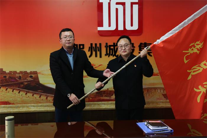 2017年12月25日,城投公司黨支部開(kāi)展主題黨日活動(dòng),由支部書(shū)記陳桂軍同志宣布市城投公司黨員突擊隊(duì)成立,宣讀了《市城投公司黨員突擊隊(duì)實(shí)施方案》,并舉行了授旗儀式。