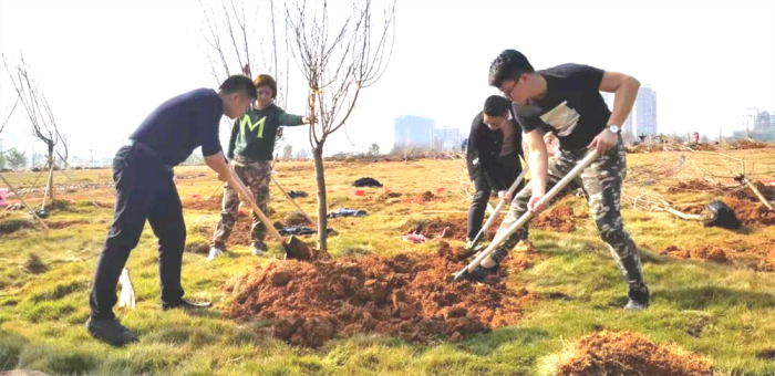 在活動(dòng)負(fù)責(zé)人進(jìn)行任務(wù)布置、流程講解后,城投集團(tuán)團(tuán)委的青年們便開始了有序的植樹活動(dòng)。大家分工明確、齊心協(xié)力,揮舞鐵鍬翻新土,扶植新苗列成行,呈現(xiàn)出一派熱火朝天的勞動(dòng)場(chǎng)面。