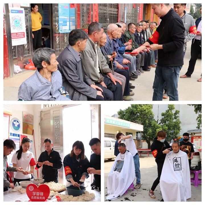 在文坡村黨群服務(wù)中心,志愿者給老人們送上了大米、水果等慰問品,并與老人們親切交談,詢問他們的身體情況以及日常生活?;顒赢?dāng)天正值“二月二龍?zhí)ь^”之際,志愿者還貼心地為老人們理發(fā)、包餃子、發(fā)紅包,讓老人們感受到濃厚的節(jié)日氣氛。