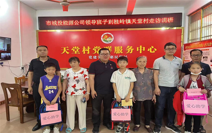 當天下午,楊維、童杰新帶隊前往城投集團定點幫扶村桂嶺鎮(zhèn)天堂村進行了鄉(xiāng)村振興推進情況走訪和愛心助學活動,向村委和駐村工作隊員詳細了解天堂村基本情況、基層黨建和鞏固脫貧攻堅成果同鄉(xiāng)村振興有效銜接等工作開展情況及存在的困難。楊維對駐村工作隊員所取得工作成果給予了充分肯定,并圍繞鄉(xiāng)村振興工作中所遇到的困難逐一研究提出了解決策略,并就下一步結合能源板塊發(fā)展業(yè)務促進鄉(xiāng)村振興提出了新思路。