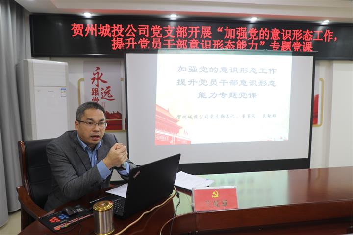 12月15日,城投公司黨支部開展“加強黨的意識形態(tài)工作,提升黨員干部意識形態(tài)能力”主題教育黨課活動?;顒佑晒军h支部書記、董事長蘭乾雄講授黨課,公司支部全體黨員、發(fā)展對象、入黨積極分子、全體團員等干部職工40余人參加活動。