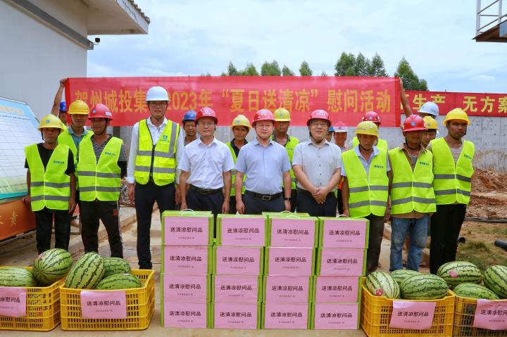 為持續(xù)做好夏季防暑降溫工作,關(guān)心關(guān)愛在高溫天氣中堅守崗位、辛勤勞動的施工人員,近日,城投集團(tuán)黨委書記、董事長黃俊,集團(tuán)黨委副書記、總經(jīng)理常瑜分別到賀州第三高級中學(xué)項目、賀州市平桂區(qū)域污水處理設(shè)施建設(shè)項目開展2023年“夏日送清涼”慰問活動。