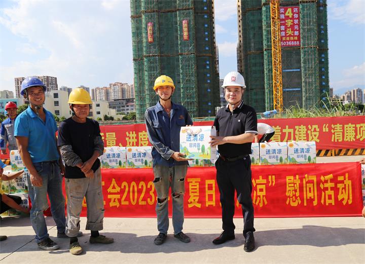 發(fā)布時(shí)間:2023-07-28 作者:圖/義潔 文/胡博文 來源:本站原創(chuàng) 審核:葉茂桃 吳姍炎炎夏日,高溫酷暑。為做好防暑降溫工作,7月28日,市總工會組織慰問組到城投集團(tuán)實(shí)施的平安居棚改項(xiàng)目開展“送清涼”慰問活動,為高溫下堅(jiān)守一線工作崗位的職工送去組織的關(guān)懷和夏日的清涼。集團(tuán)黨委委員、副總經(jīng)理柳國忠,集團(tuán)工會副主席、總經(jīng)理助理謝慈政參加慰問。