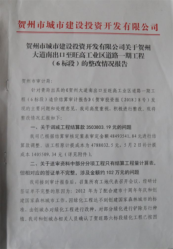 附件一:關(guān)于賀州市靈峰大橋工程建設(shè)項(xiàng)目竣工決算審計(jì)整改情況的報(bào)告 pdf