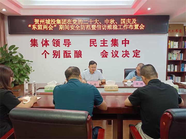 9月9日,賀州城投集團(tuán)召開(kāi)在黨的二十大中秋國(guó)慶節(jié)及東盟兩會(huì)期間安全防范暨信訪維穩(wěn)工作布置會(huì)。集團(tuán)黨...