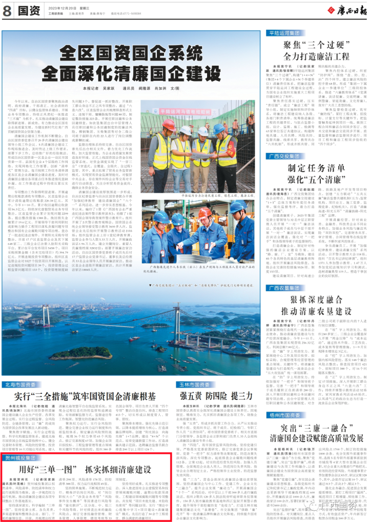清廉國企|賀州城投集團:用好“三單一圖” 抓實抓細清廉建設2024-01-09